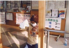 | 朝8時半より、江北生協診療所の清掃を行っています。清掃の後は隣の公園でセラバンド体操を行います。 | ![]() |