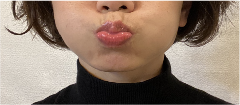「いー」っと口角を引き延ばす。その後「うー」っと力を入れてる唇をすぼめる。