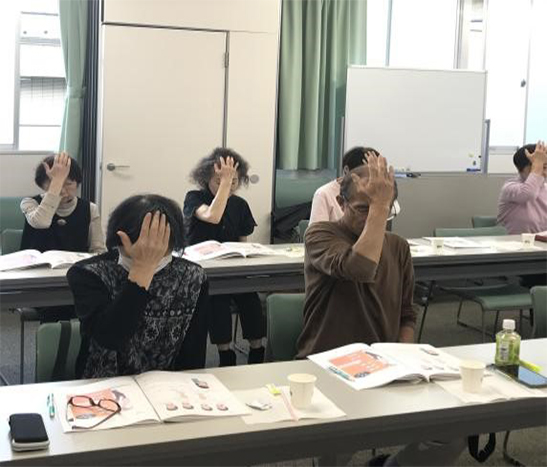 次に実際にオーラルフレイルを予防するトレーニングを一緒に行いました。みなさんとても一生懸命にトレーニンングしていました。